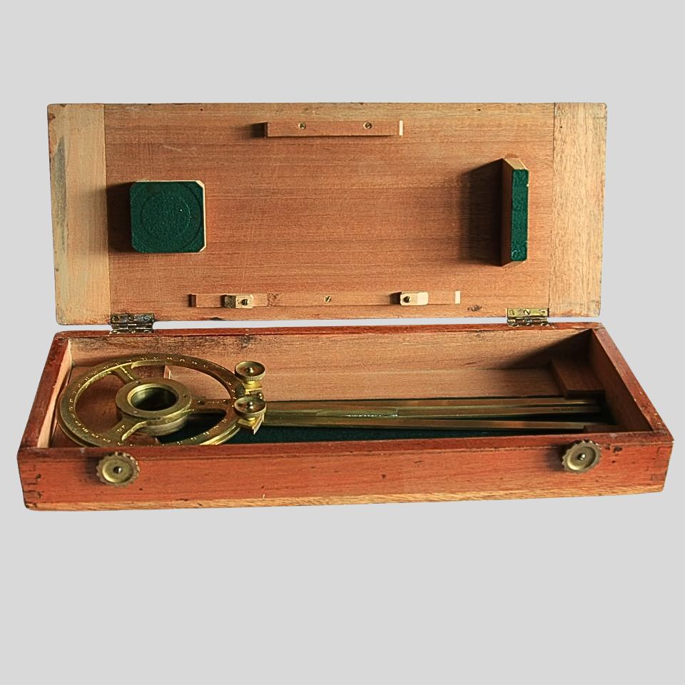 A vintage teak cased station pointer by H.Hughes & Son, London used in a ship’s navigation, circa 1920s. Size length 50cms, depth 20cms, height 6cms